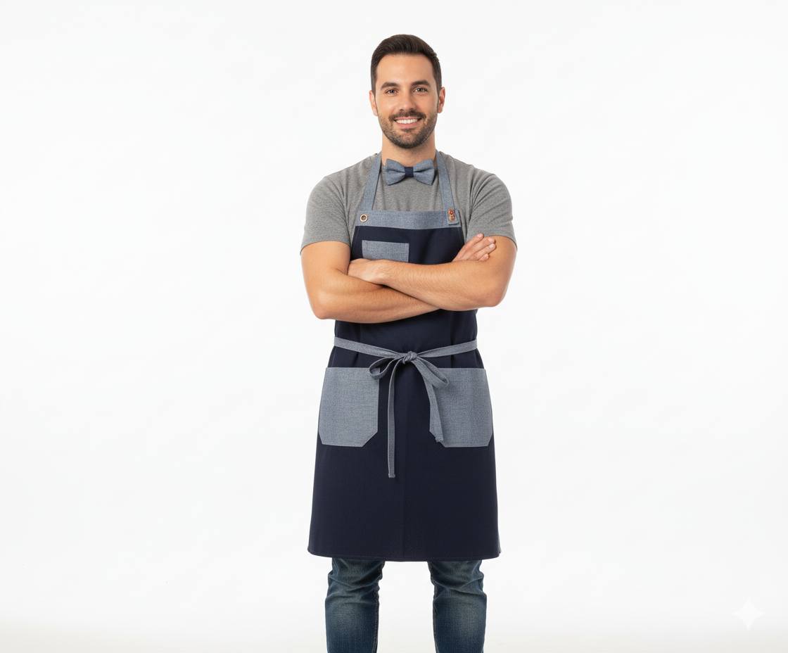 Ši prijuostė pagaminta iš standaus džinsinio audinio. Puikiai tiks tiek virėjams, tiek kepėjams. Šalia prijuostės - peteliškė, kuri suteiks išskirtinumo.